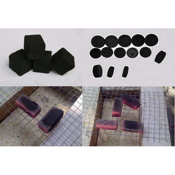 Spesifikasi Batok Kelapa Arang Briket Shisha : Bahan Baku : 100% arang tempurung kelapa Bentuk: Shisha bentuk 2, 5cm x 2, 5cm x 2, 5 cm dan tebal 1, 5 cm Binder: Tapioka bubuk. Aditif: .... Volatile: 8 - 10% Ash: 3 - 5% Moisture: 5 - 7% Fix. Karbon: Min 80% Pemanasan Nilai: 7500 KCAL / KG min Pembakaran Waktu: 1, 5 Jam + Packing: kotak karton / PP tas Kotoran: 0% berat pasir / batu Pembakaran - Tidak ada percikan apapun, asap Toksisitas: tidak ada tambahan bahan kimia Tidak mengandung tar dan abunya putih Sistim Pencetakan dengan menggunakan press sehingga bentuk dan satuan berat per satuan briket adalah sama