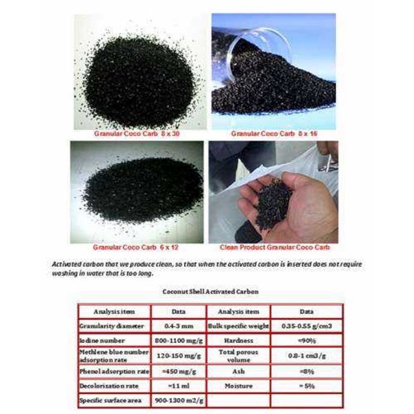 Karbon Aktif Tempurung Kelapa dengan ukuran , 6X12 , 8X16 , 8X30 , 20x40 Mesh.
